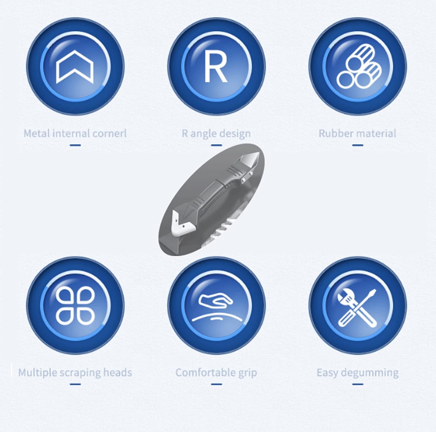 Professional multifunctional design: The silicone removal tool combines three functions into one: a multi-purpose inside corner scraper, a flat angle scraper, and a silicone smoother. It helps you remove caulk, grout sealant, reseal, repair gaps, and easily spray and clean residual glue. It's quick and easy to use, saving you time and making you a more professional caulking expert.