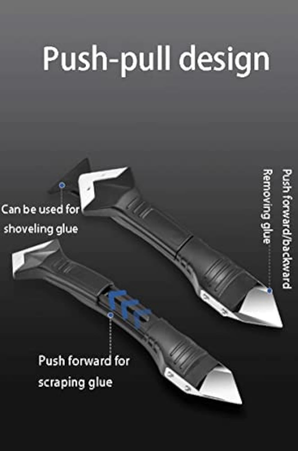 Durable and durable material: This caulk removal tool features a sharp, hard stainless steel scraper. Made of ABS and stainless steel, it quickly removes stubborn old glue. This handheld caulk removal tool also comes with a delicate silicone spatula for removing bumps and dents. This adhesive remover is ideal for smoothing sealant and caulk lines; it handles most silicone jobs, including edges, corners, and seams.