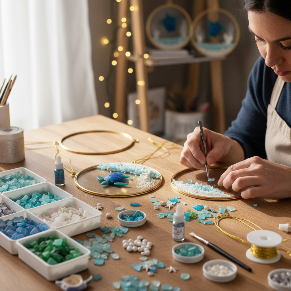 • Artisan What Makes It Uncommons: Enhanced with miniature pearls, corals, seashells, and sand, all set within a golden frame for a refined coastal look.